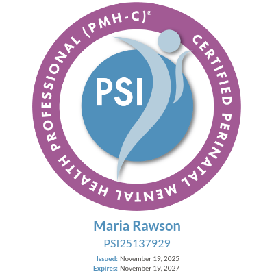 Maria Rawson holds a Master’s degree in Clinical Mental Health Counseling and has built her practice around supporting individuals through life’s most vulnerable and transformative seasons. She is trained through Postpartum Support International (PSI) in perinatal mood and anxiety disorders and is a Perinatal Mental Health Certified Clinician (PMH-C). Her work is grounded in trauma-informed care, with additional training in Traumatic Stress Studies that deepens her understanding of how trauma impacts the body, brain, and relationships.